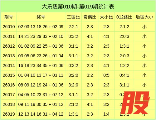 大小分析:上期小数明显较热,开出大小比1:4,最近10期前区奖号大小总比例为22:28,小数表现较热。本期看好大数概率较小,参考大小比2:3。